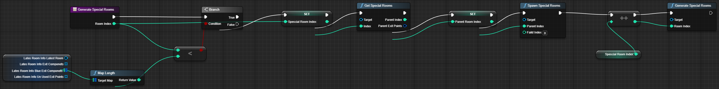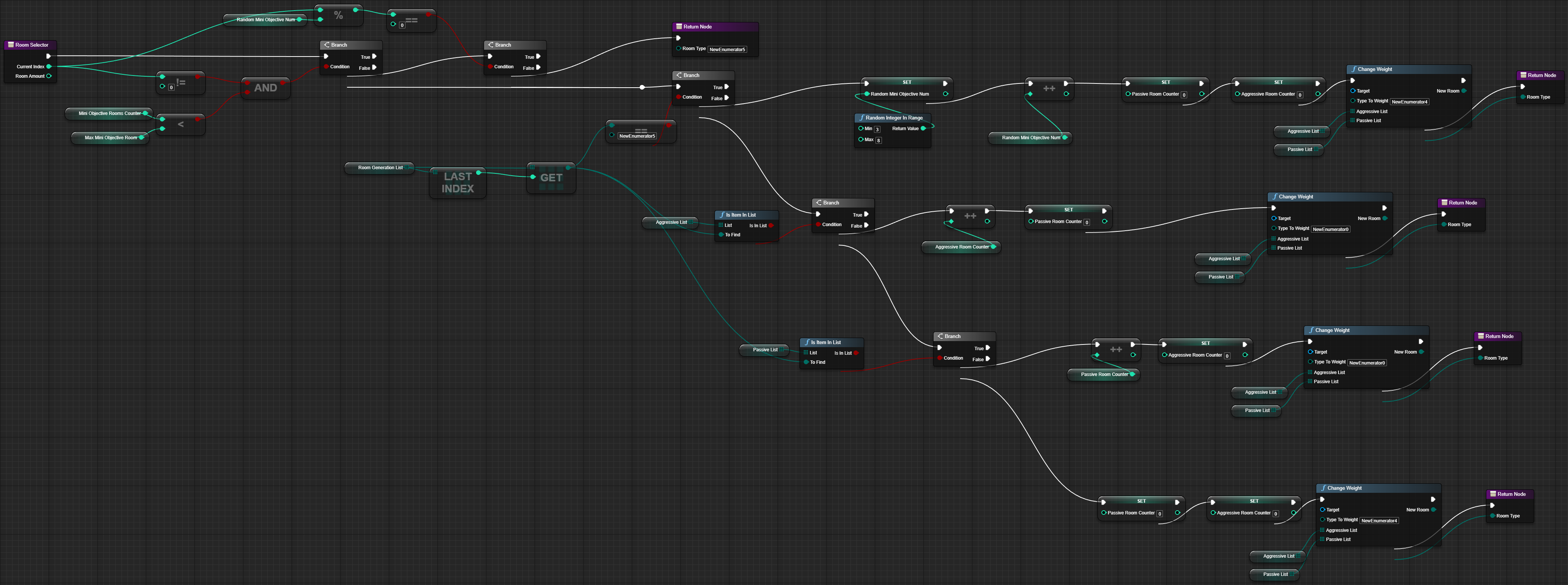 How the level generator works is first choosing which order rooms will spawn in, with some weighted randomness, a room type gets chosen - a room type being an Enum class. The chosen room type gets placed in an array that's going to be used later for spawning room Actors. The weighted randomness gives control over level flow when generating.