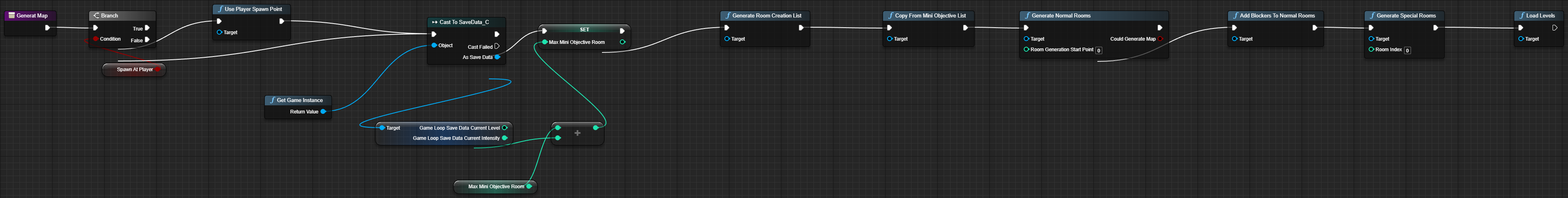 When making the level generator, it was easy to make rooms spawn and check if placements were valid. I struggled with figuring out how to control the randomisation with the system I had, because the world map isn't built on a grid, and rooms don't have any standardized measurements. We also wanted the map to be linear, having a clear direction to move and no big branching paths that the player could walk through. Why we wanted control over how levels were generated was to get control over the game and level flow, having areas that are intense and calmer areas.